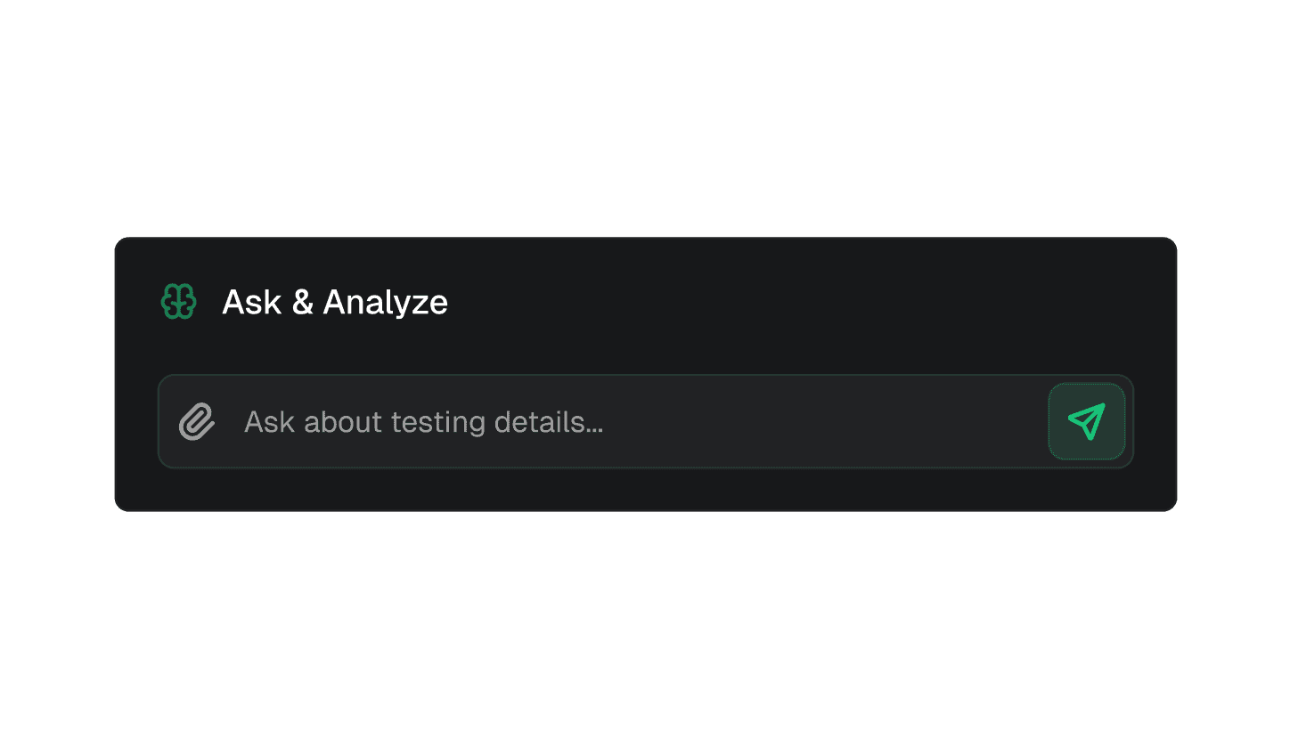 Our AI-powered chatbot allows users to ask questions about their testing environment and receive instant feedback. This makes testing more interactive and accessible, enabling you to quickly resolve issues without diving deep into code.